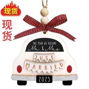跨境热销双层木质婚礼车挂饰MrMrs饰品-and情侣圣诞婚礼趣味礼物