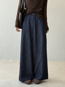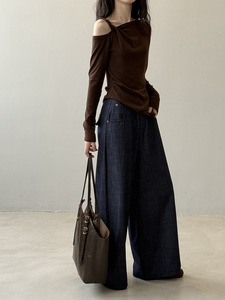 言双 简约休闲阔腿牛仔裤女秋季新款高腰宽松显瘦垂感拖地裤G8011