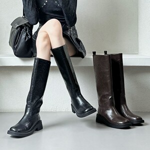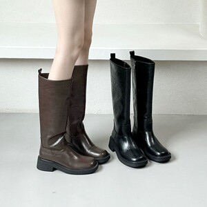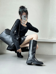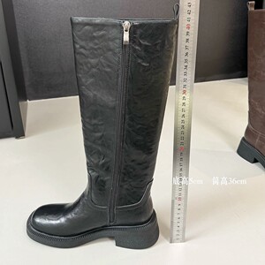 Ali guifei 骑士靴女2025长筒靴黑色高筒靴子粗跟厚底不过膝长靴