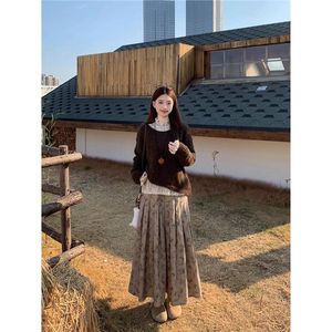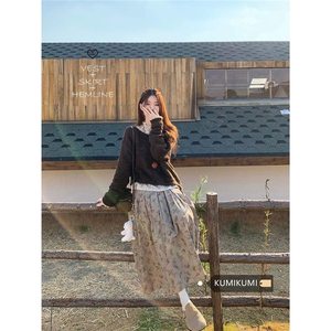 复古慵懒风宽松套头针织毛衣女装秋冬休闲软糯上衣半身裙三件套装