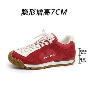 7CM厚底复古阿甘鞋女2025新款内增高休闲小花流浪运动跑步德训鞋