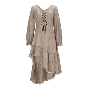 2025v领春秋季设计感时尚休闲连衣裙女子长袖小众飘逸线条连衣裙
