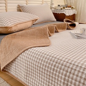卡其小格【A面全棉水洗棉 B面牛奶绒 双面可用】
