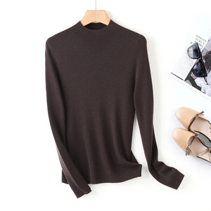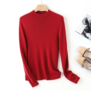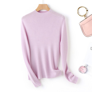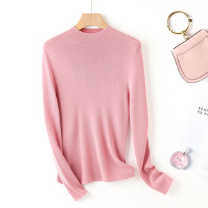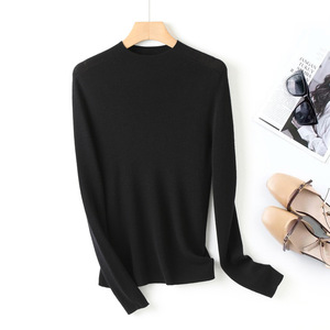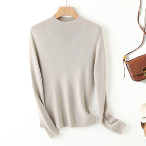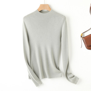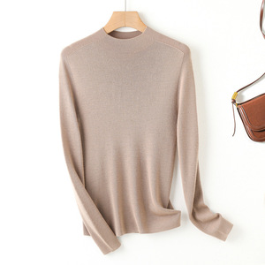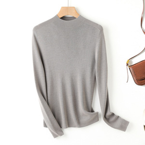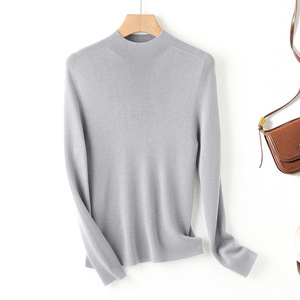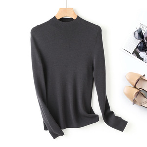 25年早秋新款100精纺羊毛一线成衣半高领针织衫长袖女纯色打底衫
