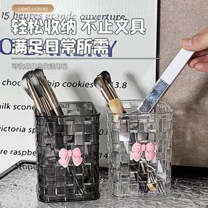 开学季桌面笔筒收纳盒学生宿舍办公桌书桌文具化妆品透明盒子神器