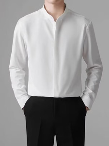 春秋季男士立领衬衫中式坠感白色衬衣免烫抗皱中国风上衣休闲长袖