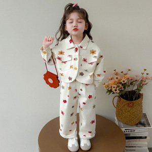 女童秋款牛仔套装洋气2025新款小女孩秋装时尚花朵牛仔外套休闲裤