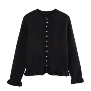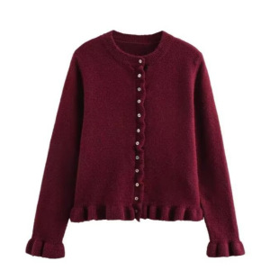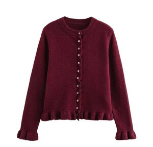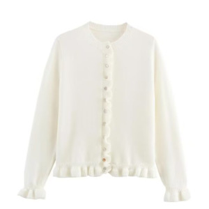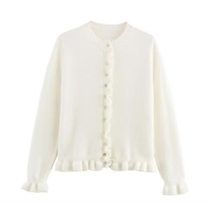 ZARO 自制 欧美风复古休闲时尚气质圆领花边饰叠层装饰针织外套