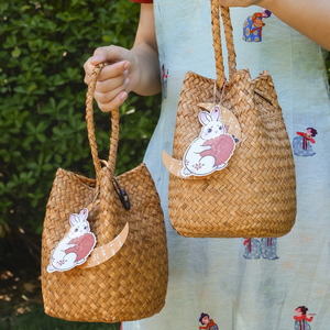 手提空篮+蓝色兔子封贴+随机吊牌+别针+雪梨纸一个尺寸约直径16高17.5cm含提手高约30cm