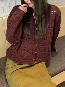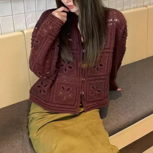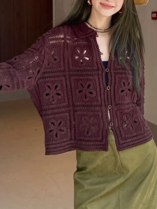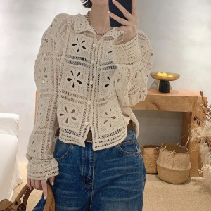 高端法式钩花镂空2025秋款上新翻领单排扣长袖针织开衫
