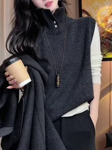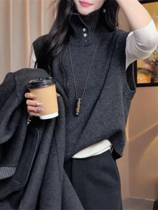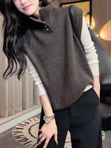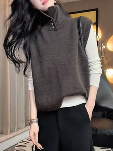 法式外穿半开高领针织衫马甲女士上衣早秋冬叠穿保暖内搭背心毛衣