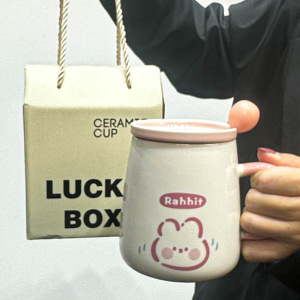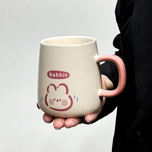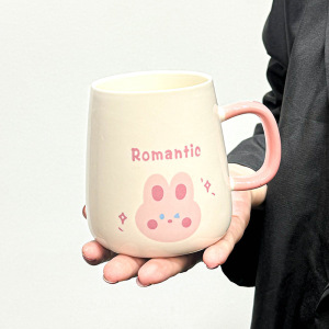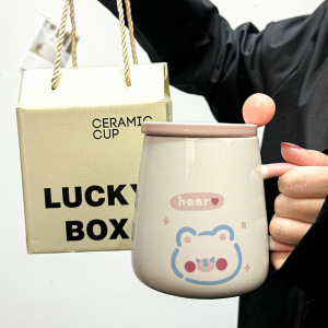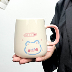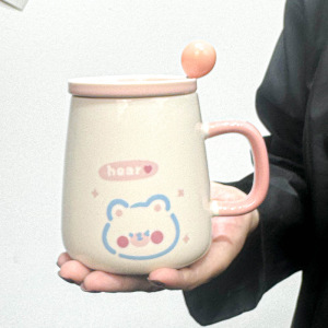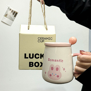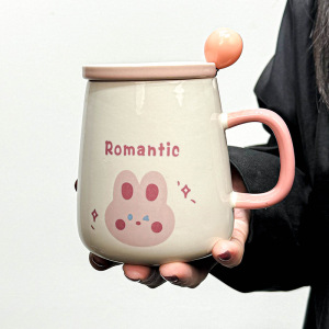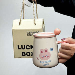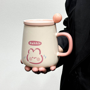 韩式ins可爱卡通粉嫩少女心陶瓷马克杯带盖勺早餐喝水杯公司小礼