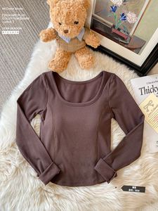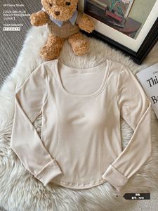 秋冬圆领打底衫女长袖上衣修身带胸垫磨毛螺纹防走光保暖背心