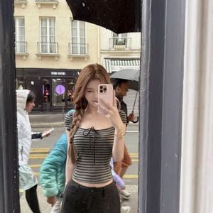 法式超好看条纹系带短袖上衣女设计感修身显瘦T恤衫夏季新款