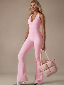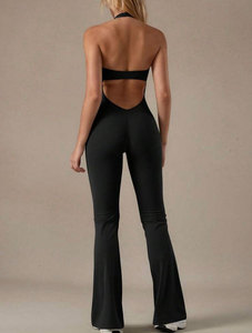 G25J128-女装瑜伽显瘦收腹微喇运动美背弹力紧身连体衣
