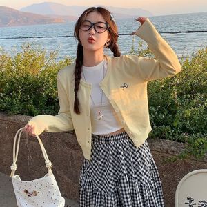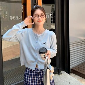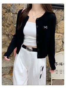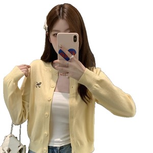 韩系减龄蝴蝶结刺绣针织开衫女早春黄色穿搭温柔绝美紫色短款上衣
