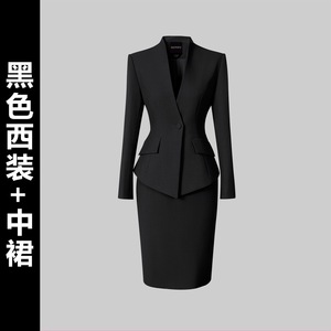 黑色西装+中裙