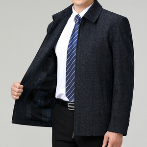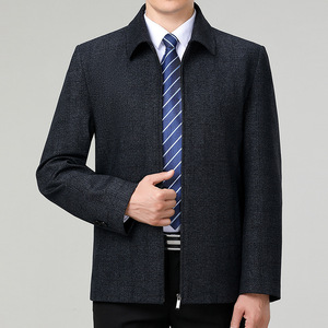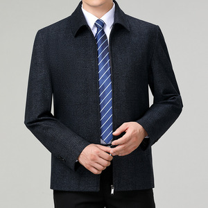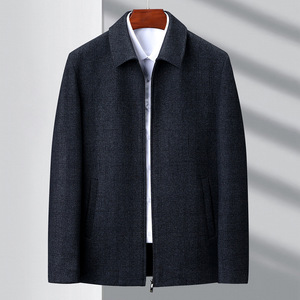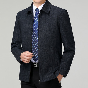 高档羊毛夹克男春秋季新款中年爸爸翻领百搭上衣休闲毛料男装外套