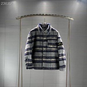 跨境Stone Island 石头岛男女重磅毛呢格纹经典袖章翻领棉服外套