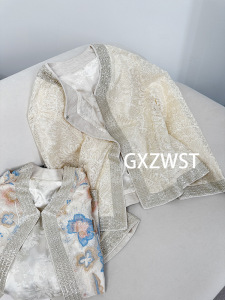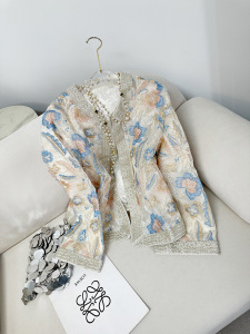 【现货】高级感钉珠刺绣亚麻长袖外套女2025秋季新款南油欧版上衣