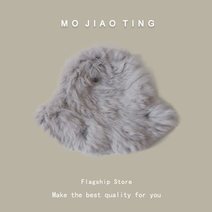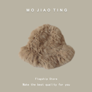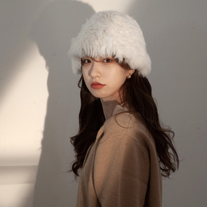 爆款兔毛帽子女秋冬款加厚保暖防寒毛线帽显脸小皮草毛绒渔夫帽