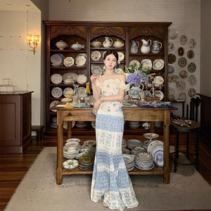 夏季度假风气质抹胸边设计感上衣女时尚扎染小众半身裙两件套