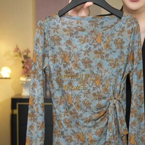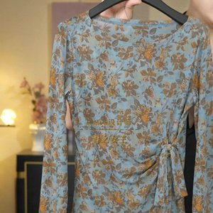 一件代发2025早秋新款时尚洋气减龄绑带设计晕染网纱弹力长袖上衣