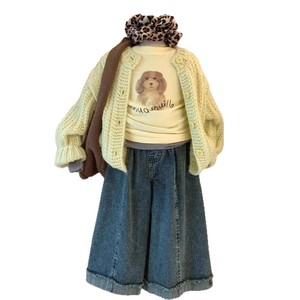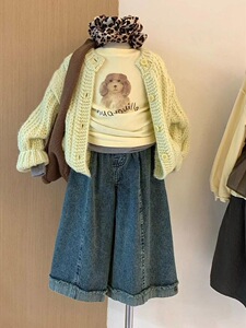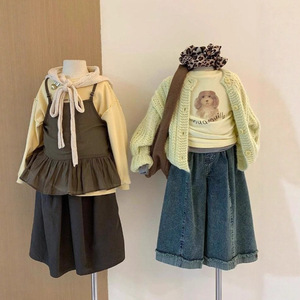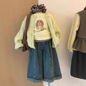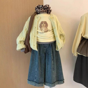 女童套装春秋装2025新款儿童毛衣外套牛仔阔腿裤三件套女孩针织衫