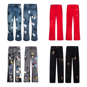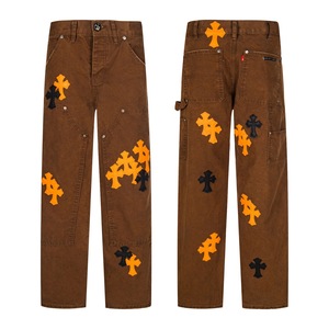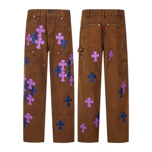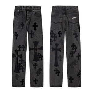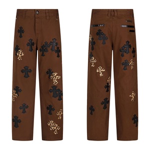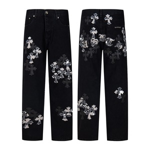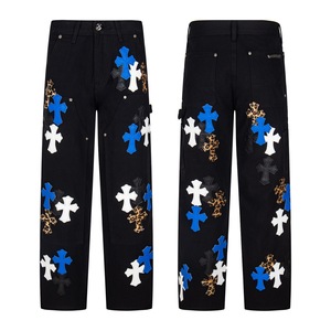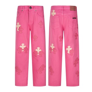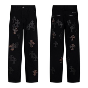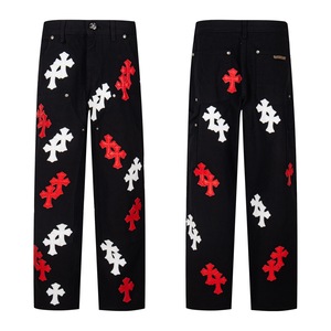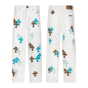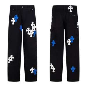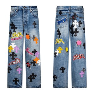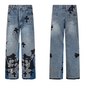 高品质外贸潮牌克罗 Chrome Hearts拼豹纹中古涂鸦绘画高街牛仔裤