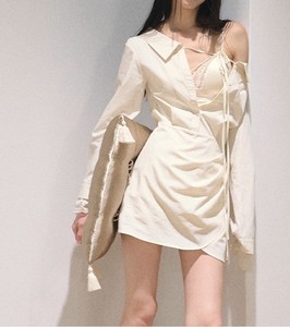 OAKMO/ "日记的那一页"莱赛尔纯欲斜肩修身衬衫连衣裙女掐腰裙子