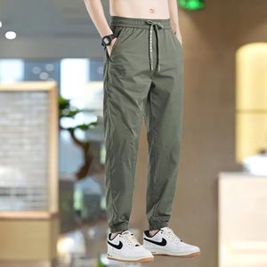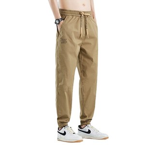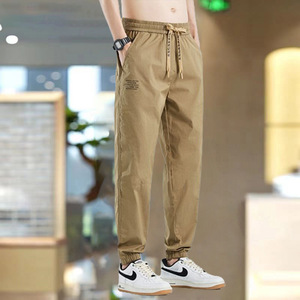 男士束脚休闲裤夏季薄款松紧腰运动工装裤爆款卡其色九分哈伦裤