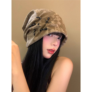 美式复古废土风堆堆帽女春秋款百搭显脸小冷帽大头围宽松包头帽子