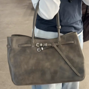 韩国小众设计师女包复古皮带装饰大容量托特包包单肩包2025秋新款
