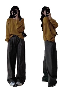 绿色浣熊绒圆领套头毛衣女秋冬宽松慵懒风软糯短款外穿秋季针织衫