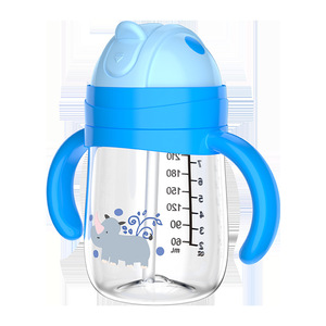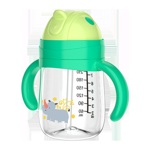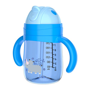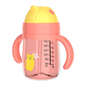 儿童水杯210ml滑盖水杯带手柄直饮杯宝宝饮水防滴漏吸管杯学饮杯