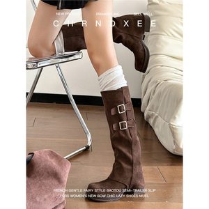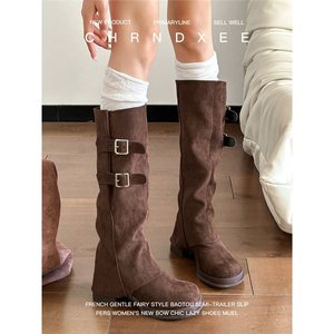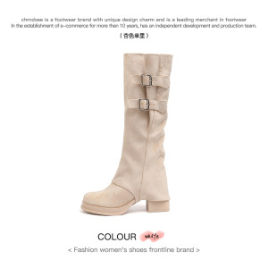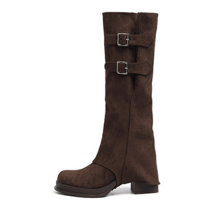 牛皮版~可拆卸两穿裤管靴女秋冬新款西部牛仔靴复古高跟厚底长靴