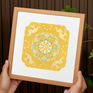 如意纹-黄色-送珍珠【正八寸中式圆角相框+材料包}】