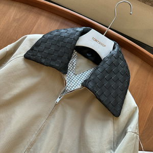 气质款强货!超级推荐高端纯尾皮编织领口卡其色拉链外套