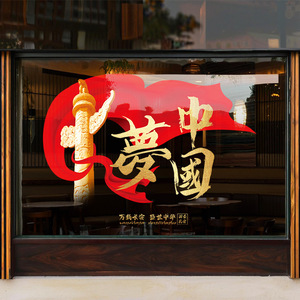 国庆节日静电玻璃门贴纸商场店铺氛围场景布置窗花装饰红色中国梦