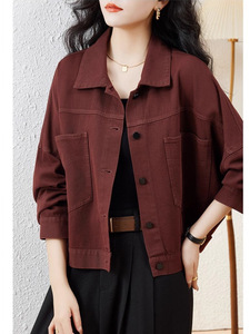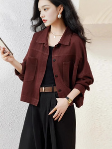 安可拉红牛仔外套女2025新款春秋小个子短款宽松休闲复古夹克上衣