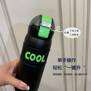 新款时尚潮酷弹跳直饮保温杯304不锈钢带提手随身杯保温保冷水杯