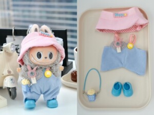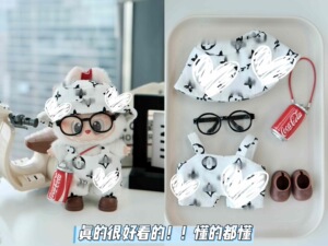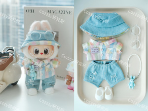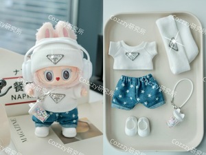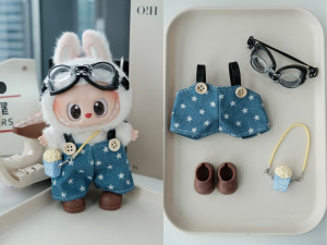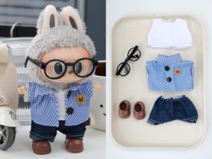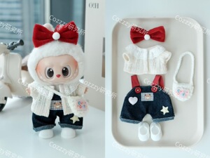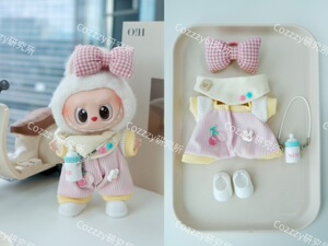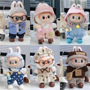 labubu六件套含眼镜鞋子!可爱拉布布搪胶衣服娃衣一代二代三代