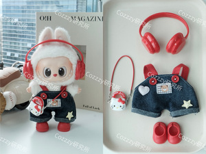 (不含娃)Kitty牛仔四件套:耳机+背带裤+鞋+kitty挂件