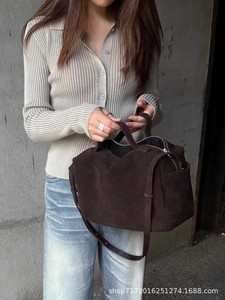 网红同款25年秋冬新款小众简约手提女斜跨包绒面大容量枕头包