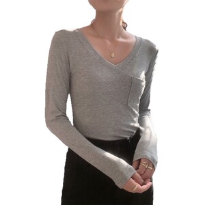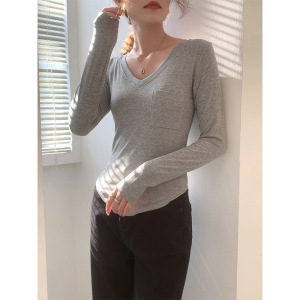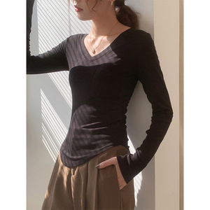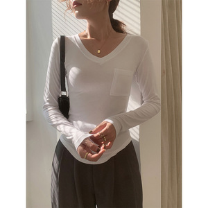 简约纯白色打底衫女2025新款春秋内搭V领修身长袖T恤显瘦韩系上衣