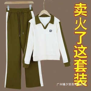 休闲运动服套装女2025春秋季新款时尚洋气宽松翻领长袖卫衣两件套