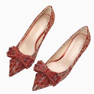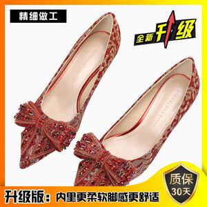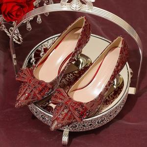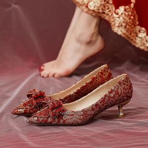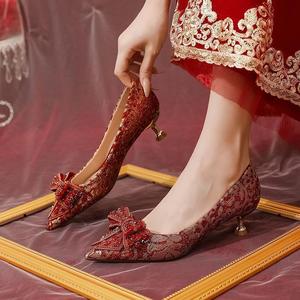 红色婚鞋新娘鞋婚纱秀禾两穿2025年秋冬新款低跟高跟鞋女细