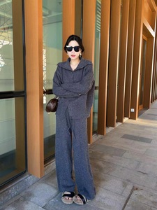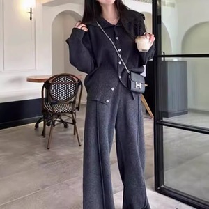 针织套装女秋季新款慵懒风显瘦休闲气质时尚阔腿裤毛衣开衫两件套