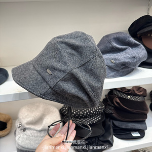 日本设计师复古褶皱堆堆帽子贝雷帽女高级感牛仔渔夫帽大头围潮