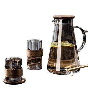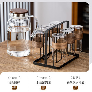 340ML透明木环杯x6+杯架+水壶+楠竹托盘✓